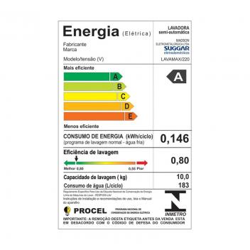 • Potência: 450W • Maior e mais eficiente batedor da categoria • Lava até 10kg de roupas • SUPER CAPACIDADE: lava edredon de casal tamanho King • 2 dispensers: um para sabão e outro para amaciante • 3 níveis de água • Filtro cata-fiapos • 2 molhos e desligamento automático • Timer com programação de 0 a 20 min. • 10 programas de lavagem • Baixo consumo: 0,146kWh/ciclo
